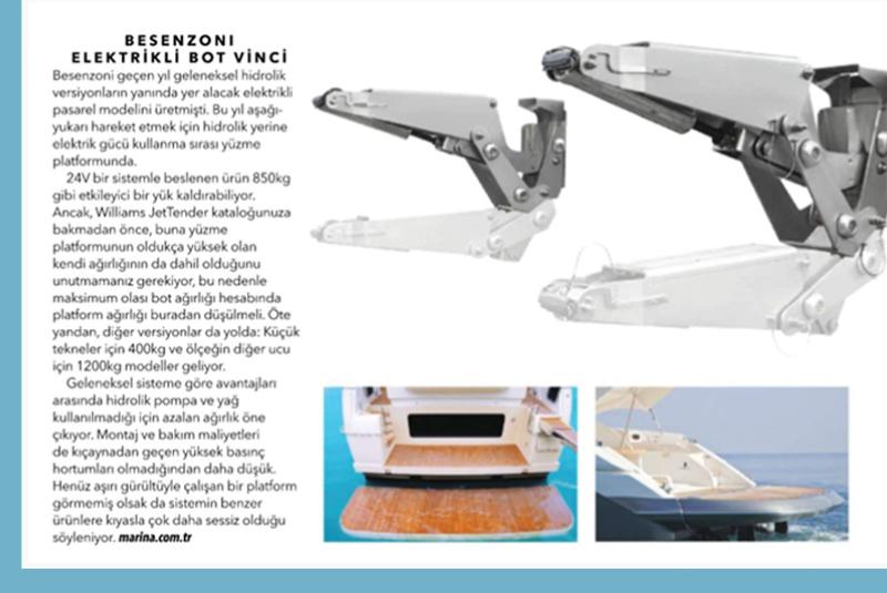 Besenzoni geçen yıl geleneksel hidrolik versiyonları n yanı nda yer alacak elektrikli pasarel modelini üretmişti. Bu yı l aşağı- yukarı hareket etmek için hidrolik yerine elektrik gücü kullanma sirası yüzme platformunda. 24V bir sistemle ...