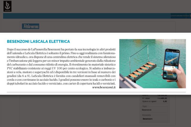 After the success of LaPasserella Besenzoni has introduced its technology to other company products and Electric LaScala is only the first. Up to now built with hydraulic operation, it now has an electric control unit that makes the silent system ...