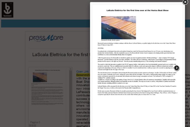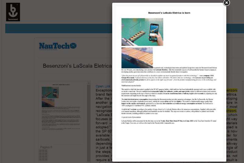Gentlemen, the revolution is green. Besenzoni, a leading brand for over 50 years in the design and manufacture of nautical accessories, presents the new LaScala Elettrica at the next Venice Boat Show from 29 May to 6 June. The Sarnico company thus ...