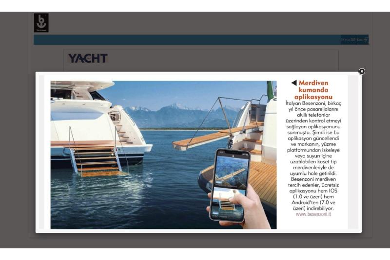 İ talyan Besenzoni, birkaç yı l önce pasarellaları nı akı llı telefonlar üzerinden kontrol etmeyi sağlayan aplikasyonunu sunmuştu. Şimdi ise bu aplikasyon güncellendi ve markanı n, yüzme platformundan iskeleye veya suyun içine uzatı labilen ...