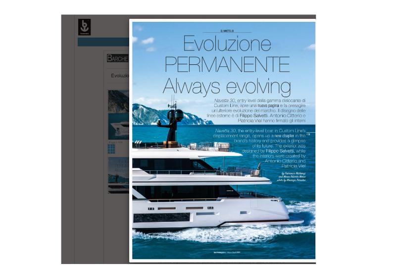 Navetta 30 Gruppo Ferretti [...] The Dual Mode Transom on the Navetta 30, developed by AYT&D (part of the Ferretti Group) and Besenzoni, is the updated 3.0 version and also includes a bulkhead that closes the garage ...