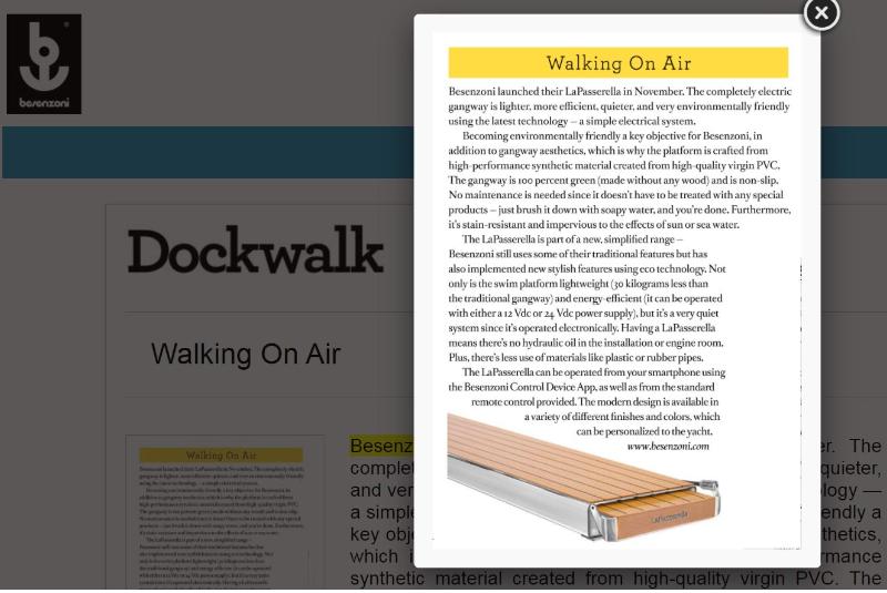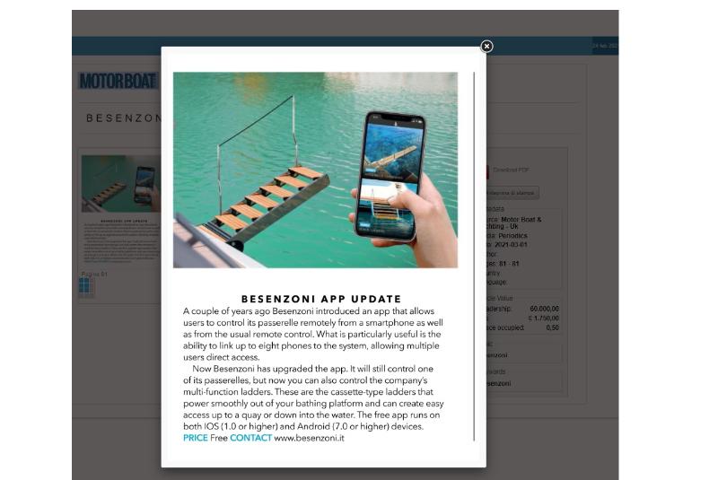 B E S E N Z O N I A P P U P D AT E A couple of years ago Besenzoni introduced an app that allows users to control its passerelle remotely from a smartphone as well as from the usual remote control. What is particularly useful is the ...