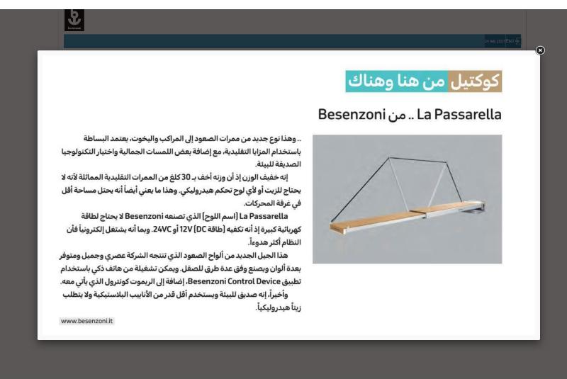 [...]Besenzoni, una delle più grandi aziende del settore, si è talmente impegnato in questo settore da arrivare a battezzare la sua ultima novità�LaPasserella! Un nome che la dice lunga sul carattere ambizioso e rivoluzionario di questo accessorio. ...