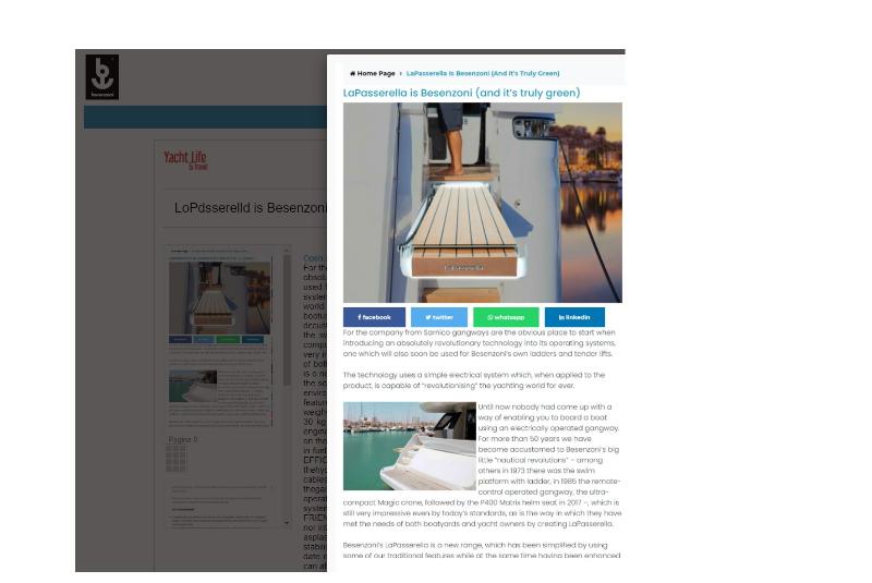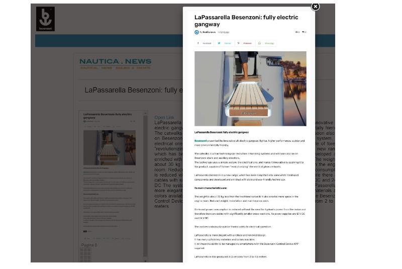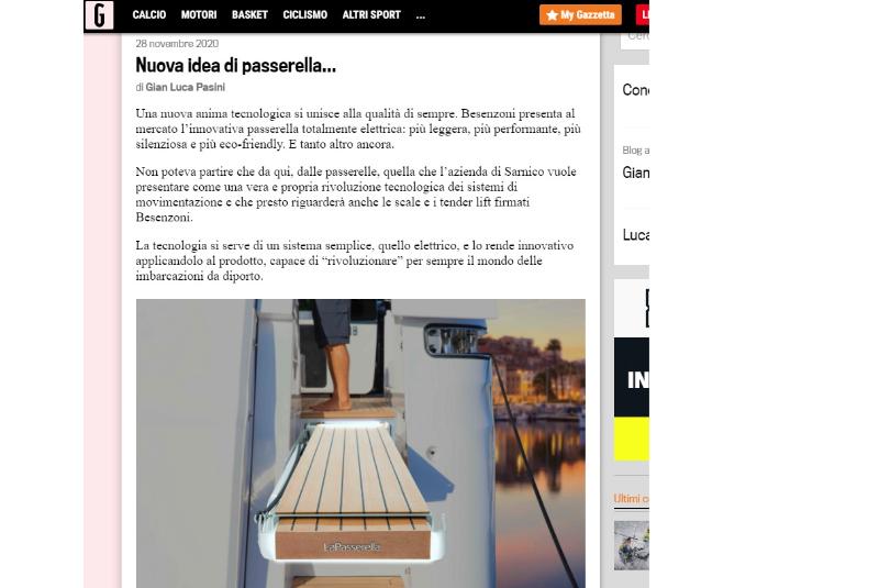LaPassarella Besenzoni: fully electric gangway Besenzoni presented the innovative all-electric gangway: lighter, higher performance, quieter and more environmentally friendly. The catwalks is a true technological revolution in handling systems and ...