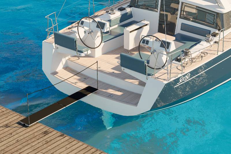 The gangway inside the bag Indispensable accessory to have on board, the PA 173 model proposed by Besenzoni can be closed in a bag and stowed in the locker when not in use. The PA 173 manual folding gangway, proposed by Besenzoni, has an anodized ...