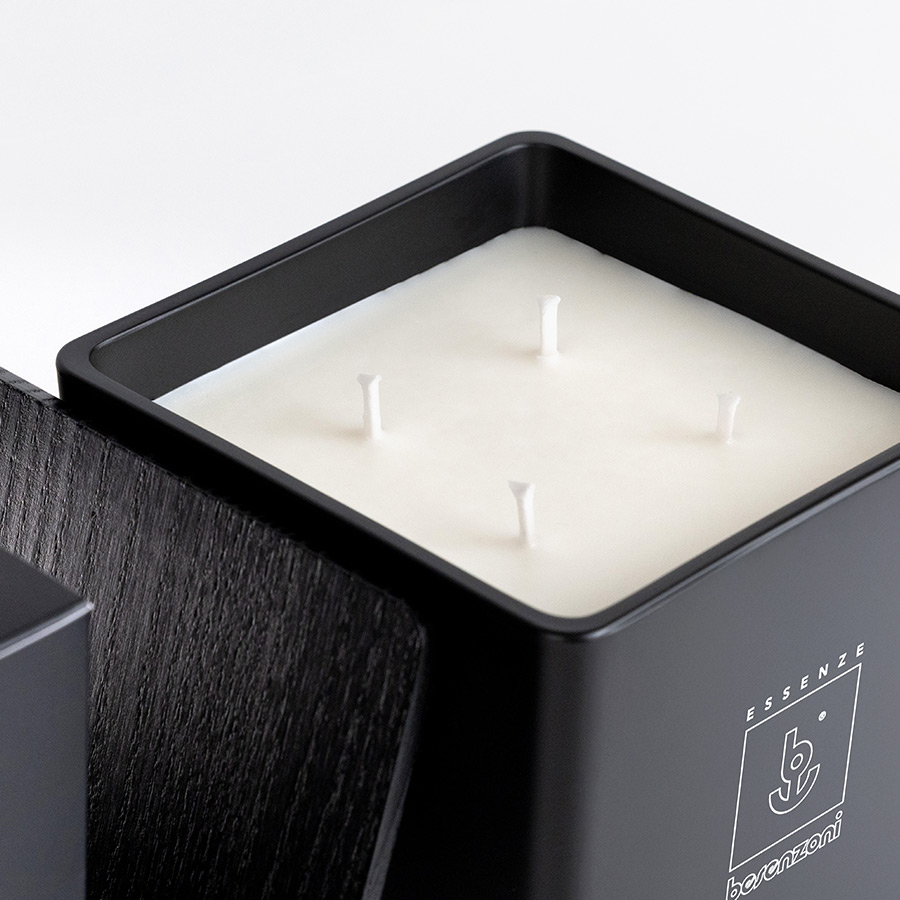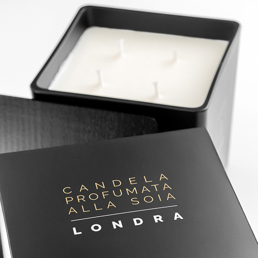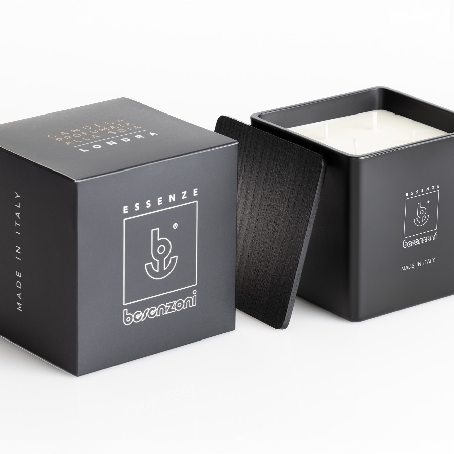 Clean lines, natural harmony. The LONDRA Scented Soy Candle, housed in a 12x12 cm matte black glass jar with a matching wooden lid, contains 900 grams of scented wax with a clean, soft, and enveloping fragrance. A delicate composition, inspired by natural soy, evokes sensations of purity and well-being, perfect for creating a relaxing and sophisticated atmosphere. For those seeking balance, even in the air they breathe.