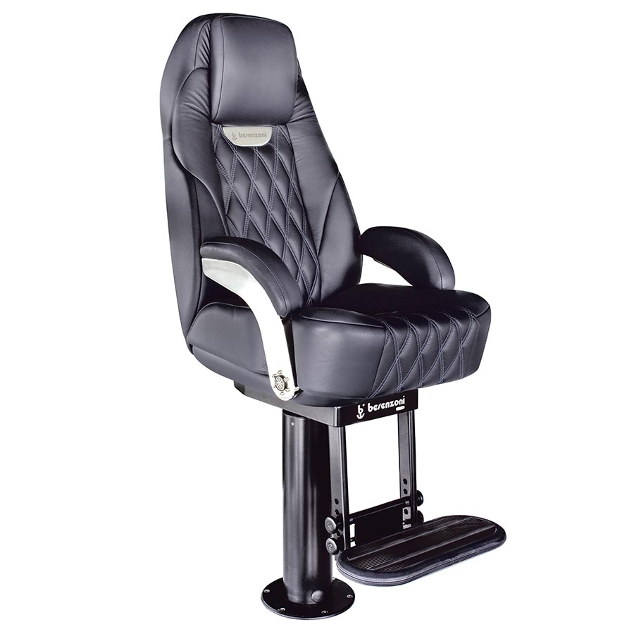 • Powder coated steel plate with Besenzoni logo positioned under the headrest