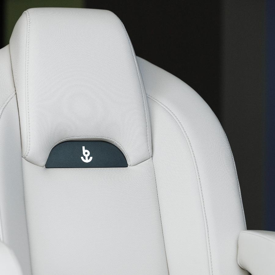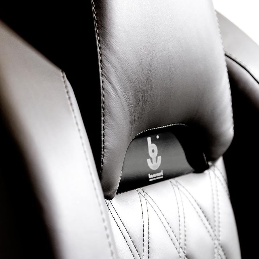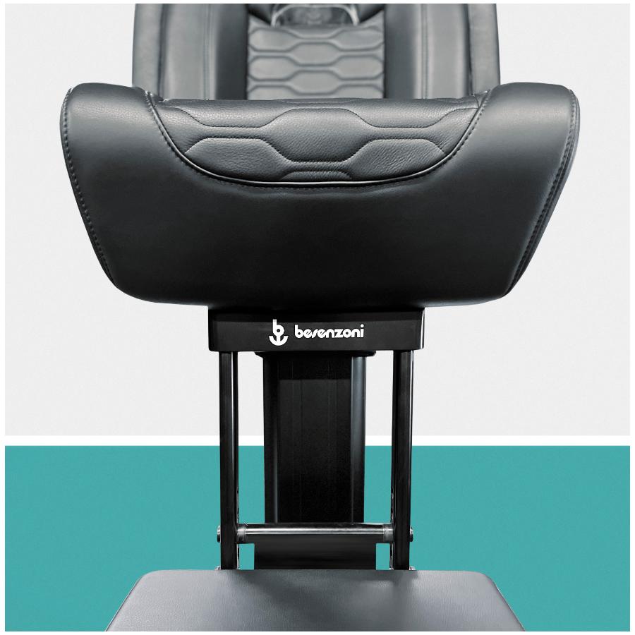 • Powder coated steel plate with Besenzoni logo positioned under the headrest